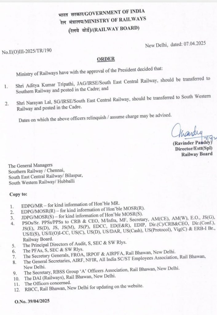 प्रतीक चौहान. रायपुर/शहडोल. दक्षिण पूर्व मध्य रेलवे जोन के बिलासपुर रेल मंडल के शहडोल में रेलवे के स्क्रैप के गोल-माल का पूरा खेल अब रेल मंत्रालय तक पहुंच गया है. सूत्र बताते है कि इस मामले से संबंधित 2 IRSE अधिकारियों का ट्रांसफर रेलवे बोर्ड ने कर दिया है. इस मामले में SECR के GM तरूण प्रकाश ने कहा है कि RPF और जोन की इंटरनल कमेटी पूरे मामले की जांच कर रही है. उन्होंने कहा कि जब तक पूरी जांच नहीं हो जाती कुछ भी कहना संभव नहीं है. वहीं दो IRSE अधिकारियों के ट्रांसफर को उन्होंने रूटीन ट्रांसफर बताया.