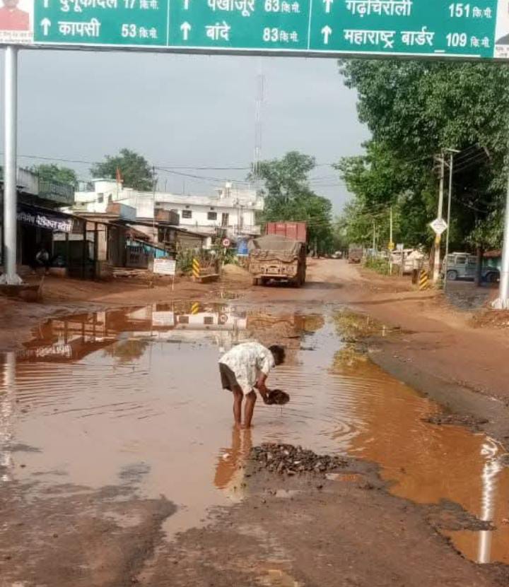 ज़रा सा पानी गिरा और ग्राम कच्चे से अंतागढ़ तक 1 अरब 50 करोड़ रुपये की लागत से नवनिर्मित सड़क पर गड्ढा हो गया। बता दें यह पानी लगातार दिन भर या रात भर नहीं गिरा, सिर्फ आधे घंटे गिरा और आधे घंटे में ही एक महीने पहले बनकर पूरी हुई सड़क का यह हाल है।