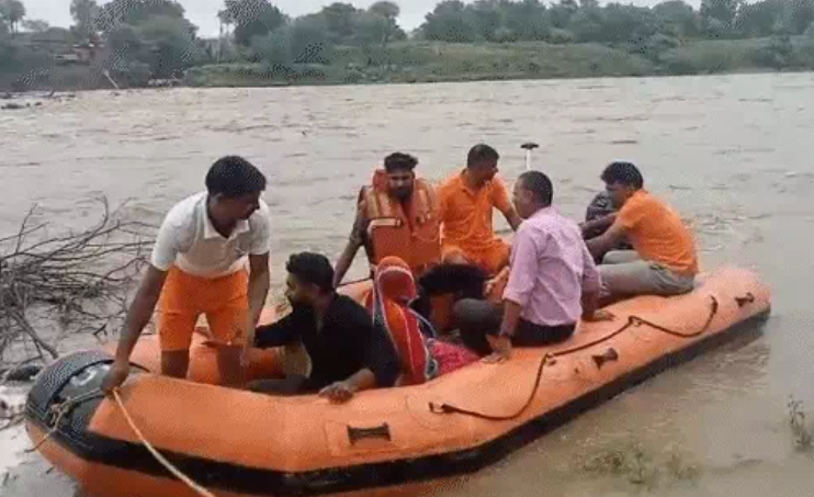 झालावाड़ में घुटनों तक पानी में शादी और प्रेगनेंट महिला का रेस्क्यू