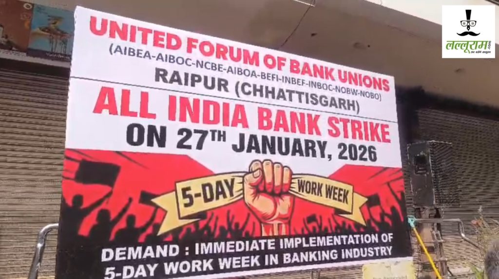 Raipur News : नितिन नामदेव, रायपुर. दो दिन की छुट्टी के बाद अगर आज आप बैंक से जुड़ा कोई जरूरी काम करने जा रहे हैं तो यह खबर आपके काम की साबित हो सकती है. कहीं ऐसा न हो कि आप ब्रांच पहुंचे और वहां ताला लगा हुआ नजर आए. दरअसल, देशभर में आज बैंकों कर्मचारियों की हड़ताल है. यूनाइटेड फोरम ऑफ बैंक यूनियंस (UFBU) ने हफ्ते में 5-डेज वर्किंग वीक की मांग को फौरन लागू करने की मांग को लेकर 27 जनवरी को देशव्यापी हड़ताल पर जाने के फैसले किया है. राजधानी रायपुर में भी मंगलवार को सरकारी बैंक बंद रहेंगे.