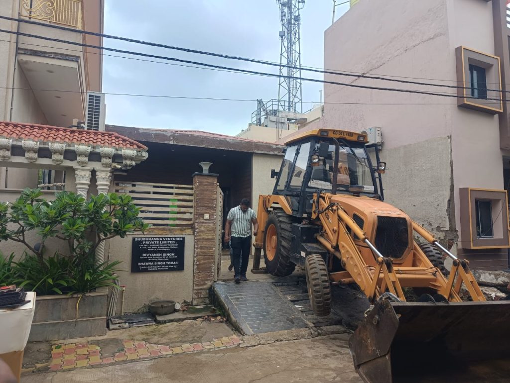 Raipur News : नितिन नामदेव, रायपुर. सूदखोर और हिस्ट्रीशीटर तोमर बंधुओं के खिलाफ पुलिस की कार्रवाई तेज हो गई है. नगर निगम और पुलिस की टीम आज भाटागांव स्थित तोमर बंधुओं के ऑफिस पहुंची और बुलडोजर कार्रवाई की. दफ्तर को बिना नक्शा और अनाधिकृत रूप से निर्माण किया गया था. बताया जा रहा है कि इसी दफ्तर से तोमर बंधु सूदखोरी का कारोबार संचालित करते थे.