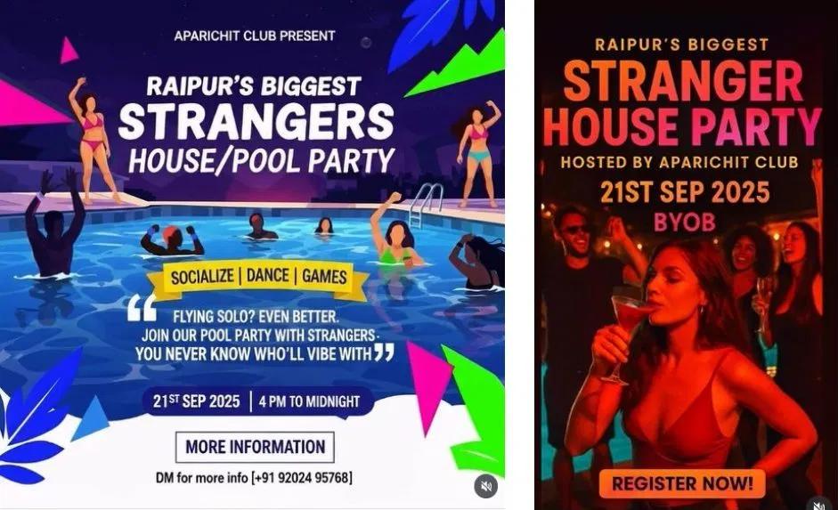 बता दें कि मेटा के सोशल मीडिया प्लेटफार्म इंस्टाग्राम पर @sinful_writer1 नामक अकाउंट से न्यूड पार्टी का आपत्तिजनक विज्ञापन जारी किया गया है। इन पोस्टरों में पार्टी का प्रचार अलग-अलग नामों से किया गया है। इनमें ‘न्यूड पार्टी’ और ‘स्ट्रेंजर हाउस पार्टी’ (Stranger House Party) शामिल हैं। स्ट्रेंजर हाउस पार्टी की तारीख 21 सितंबर बताई गई है और उसमें प्रतिभागियों से खुद की शराब लाने के लिए कहा गया है। हालांकि, पार्टी का स्थान और आयोजकों के नाम अब तक सामने नहीं आए हैं।