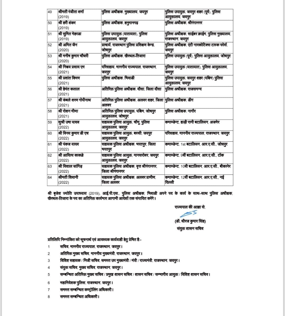 - Rajasthan IPS Transfer List: राजस्थान में 64 आईपीएस अधिकारियों के तबादले, 22 जिलों के बदले एसपी