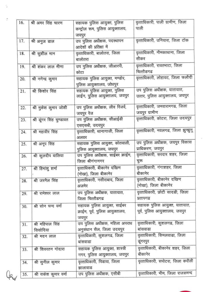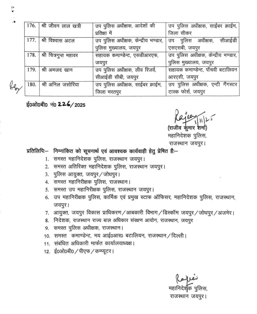 इस प्रशासनिक फेरबदल के तहत प्रदेशभर में अधिकारियों की नई तैनाती तय की गई है। माना जा रहा है कि इन तबादलों का उद्देश्य पुलिस व्यवस्था को और अधिक प्रभावी और जवाबदेह बनाना है।