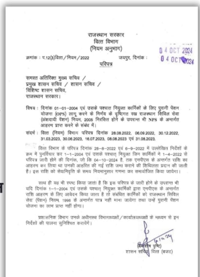 पेंशन योजनाओं में परिवर्तन का इतिहास: पिछली गहलोत सरकार ने जनवरी 2004 के बाद नियुक्त सरकारी कर्मचारियों के लिए NPS की जगह OPS लागू किया था, जिससे कर्मचारियों की पेंशन कटौती बंद हो गई थी। इससे पहले NPS के तहत कर्मचारियों की वेतन से 10% कटौती होती थी और सरकार भी इतना ही योगदान करती थी।