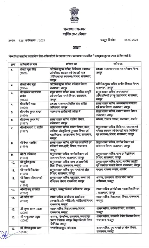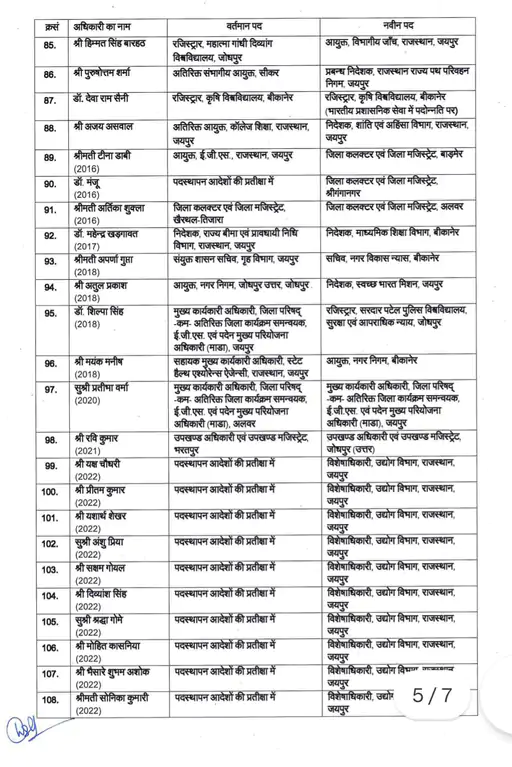 Rajasthan News: राजस्थान सरकार ने गुरुवार को बड़ी प्रशासनिक सर्जरी करते हुए 108 आईएएस अधिकारियों का तबादला किया है। वहीं 20 आईएएस अधिकारियों को सरकार ने वर्तमान जिम्मेदारी के अलावा अतिरिक्त कार्यभार भी सौंपा है। शासन द्वारा जारी लिस्ट में आईएएस अधिकारी टीना डाबी और उनके पति प्रदीप के. गवांडे को सरकार ने बड़ी जिम्मेदारी दी है।