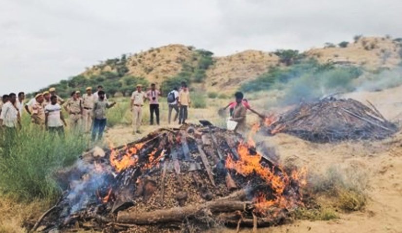 बाड़मेर। जिले में पुलिस ने नशे के खिलाफ बड़ी कार्रवाई करते हुए करोड़ों रुपए के मादक पदार्थों को सुरक्षित विधि से नष्ट कर दिया. पुलिस फायरिंग रेंज में न्यायालय के आदेशानुसार आयोजित इस कार्रवाई में 18 क्विंटल 61 किलो 447 ग्राम डोडा पोस्त और 166 ग्राम स्मैक को जलाया गया, जिसकी अनुमानित कीमत 3.12 करोड़ रुपए है.