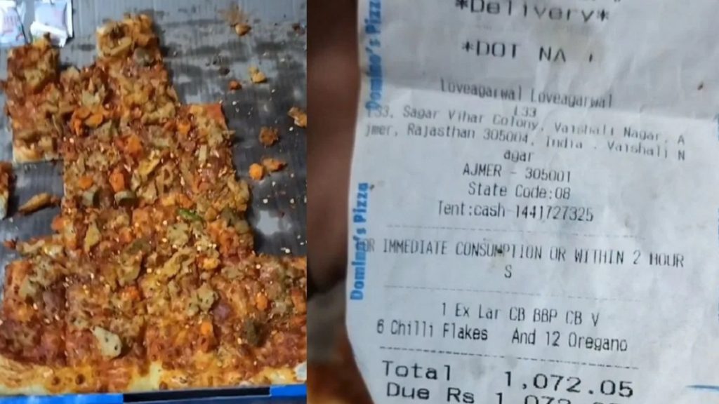 Rajasthan News: राजस्थान के अजमेर, वैशाली नगर से एक हैरान करने वाला मामला सामने आया है। यहाँ एक नामी फूड चेन डोमिनोज ने एक शुद्ध शाकाहारी ग्राहक को वेज की जगह नॉनवेज पिज्जा डिलीवर कर दिया। ग्राहक ने जब पिज्जा खाया, तब उसे अहसास हुआ कि उसके साथ कितना बड़ा धोखा हुआ है। पीड़ित ग्राहक लव अग्रवाल अब अपनी धार्मिक भावनाओं को ठेस पहुचाने के लिए स्टोर प्रबंधन पर भड़के हुए हैं।