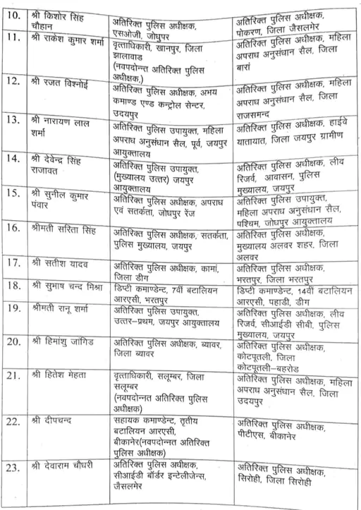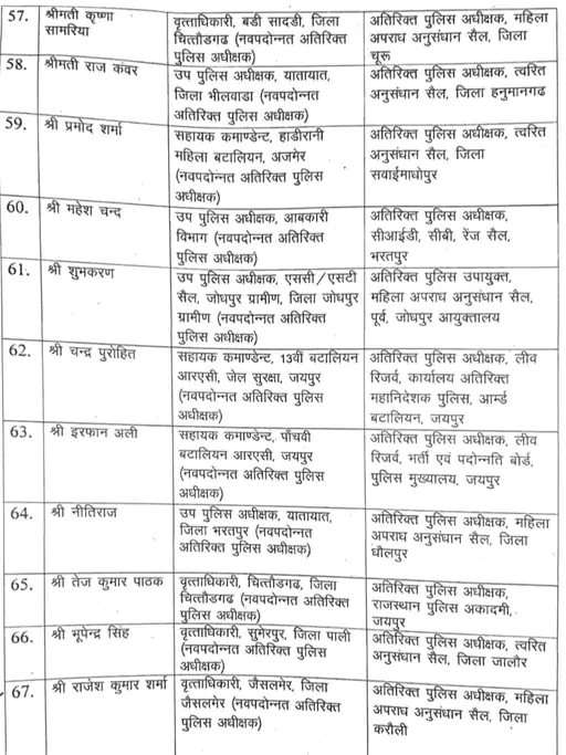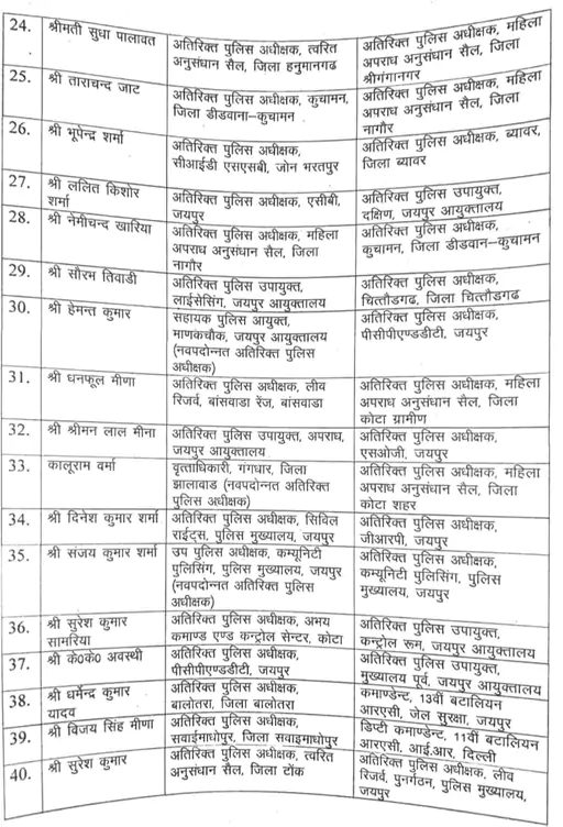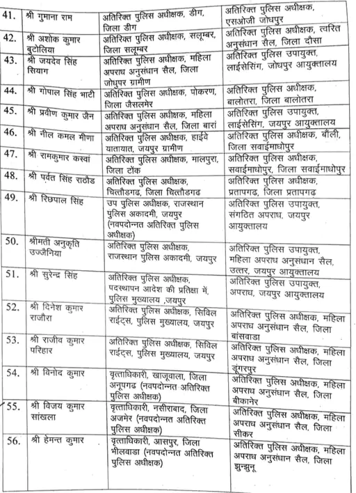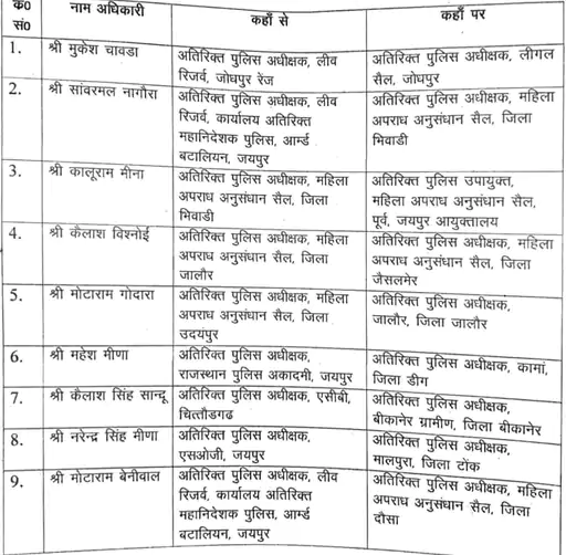 गृह विभाग द्वारा तत्काल प्रभाव से इन अधिकारियों को उनके नए स्थानों पर पदभार ग्रहण करने का निर्देश दिया गया है। इनमें कई अधिकारी ऐसे थे जो लंबे समय से एक ही स्थान पर तैनात थे, जिन्हें अब बदलकर नए जिलों में भेजा गया है। राज्य सरकार का यह कदम प्रशासनिक व्यवस्था में सुधार और पुलिस बल की कुशलता बढ़ाने के उद्देश्य से उठाया गया है।