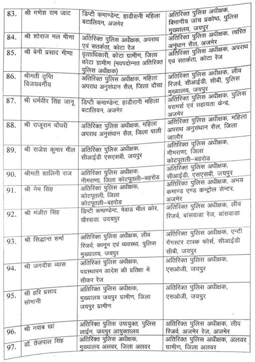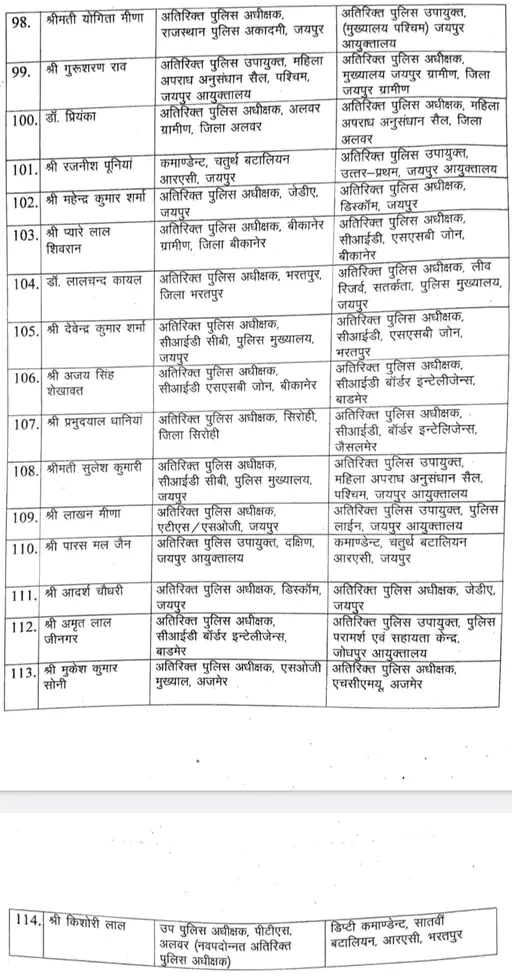 Rajasthan News: राजस्थान में तबादलों का दौर जारी है। हाल ही में IAS और IPS अधिकारियों के तबादलों के बाद अब राज्य के गृह विभाग ने 114 राजस्थान पुलिस सेवा (RPS) अधिकारियों का तबादला किया है। जारी की गई सूची के अनुसार, यह सभी अधिकारी विभिन्न जिलों में अतिरिक्त पुलिस अधीक्षक (ASP) के पद पर तैनात थे।