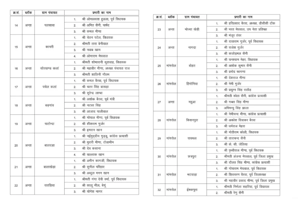 Rajasthan Politics: राजस्थान की अंता विधानसभा सीट पर उपचुनाव को लेकर सियासी हलचल तेज हो गई है। 11 नवंबर को होने वाले मतदान से पहले कांग्रेस ने इस सीट को जीतने के लिए पूरी ताकत झोंक दी है। पार्टी ने प्रचार अभियान के लिए नेताओं की लंबी फौज उतार दी है और 56 नेताओं को गांव-गांव की जिम्मेदारी सौंपी गई है।