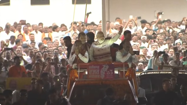 Rajyotsav 2025 : रायपुर। छत्तीसगढ़ राज्य गठन के 25 वर्ष पूरे होने के अवसर पर आज नवा रायपुर में राज्योत्सव 2025 का भव्य आयोजन किया जा रहा है। प्रधानमंत्री नरेंद्र मोदी इस ऐतिहासिक रजत जयंती समारोह का शुभारंभ किया। उनके साथ मंच पर मुख्यमंत्री विष्णुदेव साय, बीजेपी अध्यक्ष किरण सिंहदेव, उपमुख्यमंत्री अरुण साव और विजय शर्मा, समेत मंत्रिमंडल के सदस्य और अन्य जनप्रतिनिधि मौजूद हैं।