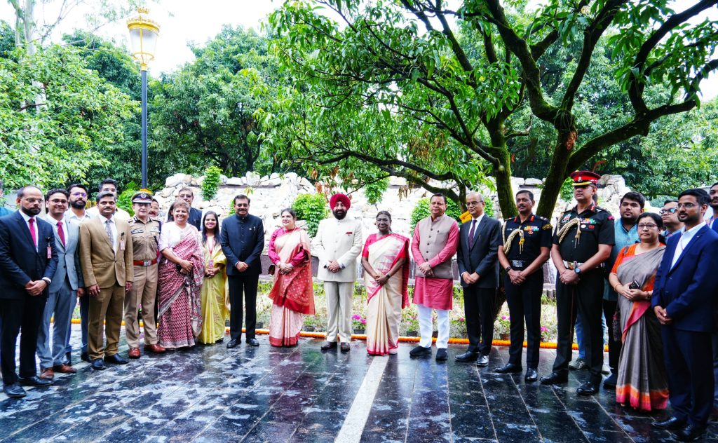 राष्ट्रपति द्रौपदी मुर्मु और राज्यपाल लेफ्टिनेंट जनरल गुरमीत सिंह (सेवानिवृत्त) की गरिमामयी उपस्थिति में शुक्रवार को राजपुर रोड स्थित राष्ट्रपति निकेतन और तपोवन परिसर में सार्वजनिक आवागमन के साथ ही कैफेटेरिया एवं स्मृति चिन्ह केंद्र का शुभारंभ किया गया. इस अवसर पर राष्ट्रपति उद्यान का शिलान्यास भी किया और राष्ट्रपति निकेतन, तपोवन और राष्ट्रपति उद्यान की जैव विविधिता पर आधारित पुस्तक का भी विमोचन किया.