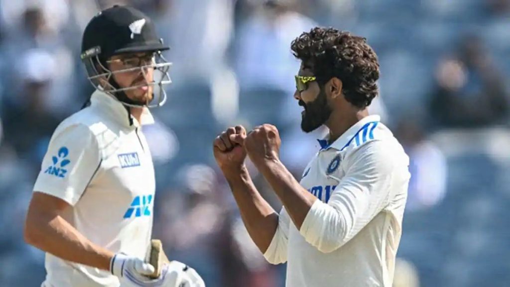 IND vs NZ 3rd Test: भारत और न्यूजीलैंड के बीच 3 टेस्ट मैचों की सीरीज का अंतिम मुकाबला मुंबई के वानखेड़े क्रिकेट स्टेडियम में खेला जा रहा है। इस मैच में कीवी टीम के कप्तान टॉम लैथम ने टॉस जीतने के बाद पहले बल्लेबाजी करने का निर्णय लिया। दिन के तीसरे सत्र तक न्यूजीलैंड ने 62 ओवरों में 8 विकेट खोकर 217 रन बना लिए हैं। इस मैच में भारतीय गेंदबाजों का दबदबा देखने को मिल रहा है। दिग्गज ऑल-राउंडर रविंद्र जडेजा ने गेंदबाजी में शानदार प्रदर्शन करते हुए 5 कीवी बल्लेबाजों को पवेलियन का रास्ता दिखा चुके है। यह उनके अंतरराष्ट्रीय टेस्ट करियर का 14वां 5 विकेट हॉल था, इसी के साथ रवींद्र जडेजा ने एक ऐतिहासिक कारनामा कर दिखाया है। कौन सा है वो कारनामा ? आइये जानते है विस्तार से।