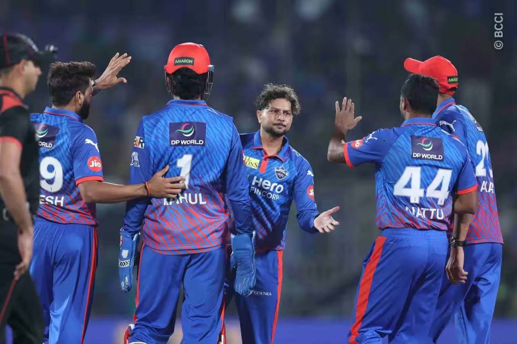 केएल राहुल (विकेटकीपर), पाथुम निसांका, नीतीश राणा, डेविड मिलर, ट्रिस्टन स्टब्स, अक्षर पटेल (कप्तान), विपराज निगम, कुलदीप यादव, लुंगी एनगिडी, मुकेश कुमार, टी नटराजन