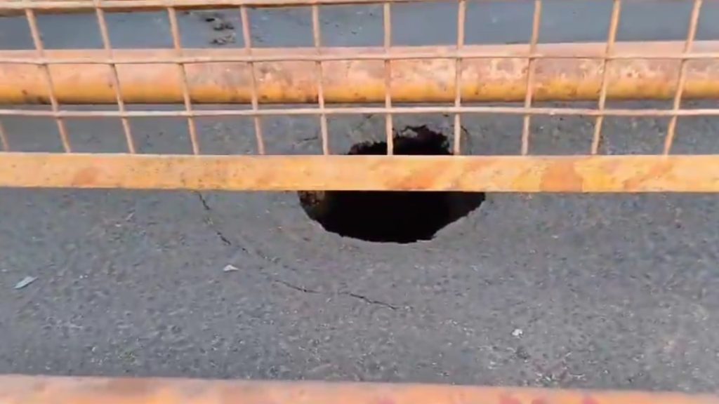 अयोध्या. श्री रामलला मंदिर की ओर जाने वाले रामपथ के निर्माण में एक बार फिर से भ्रष्टाचार का जीता जागता नमूना दिखाई दिया है. राम पथ पर हुए होल ने निर्णाम कार्य का हाल बता दिया है जिससे सड़क की गुणवत्ता की पोल खुल गई है. शहर के रिकाबगंज चौराहे के पास राम पथ धंस रहा है. सड़क पर होल भी हो गया है. पुलिस ने बैरिकेडिंग लगाकर होल को कवर कर दिया है.