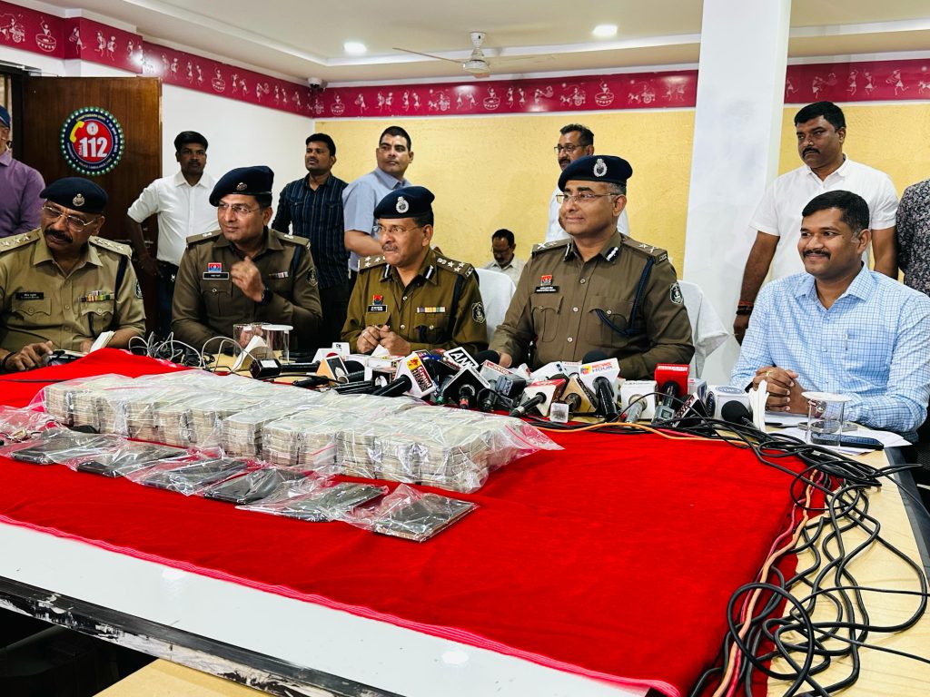 शिवम मिश्रा, रायपुर. राजधानी रायपुर के खम्हारडीह थाना क्षेत्र में नगरीय निकाय चुनाव मतदान के बीच हुई दिनदहाड़े डकैती की घटना का पुलिस ने 48 घंटे के भीतर खुलासा कर दिया है. इस मामले में पुलिस ने नागपुर के दो अंतर्राज्यीय बदमाशों और एक महिला समेत कुल 10 आरोपियों को गिरफ्तार किया है. पुलिस ने आरोपियों के कब्जे से लूट के 59.50 लाख रुपये नगद, सोने के आभूषण और घटना में इस्तेमाल की गई दो कार जब्त की है. आरोपियों ने बिना नंबर की रिज्ड कार में सवार होकर डकैती की घटना को अंजाम दिया था. इस पूरे मामले का खुलासा रायपुर रेंज आईजी अमरेश मिश्रा ने किया है. साथ ही आईजी ने जांच टीम को 30,000 रूपये नगद इनाम देने की घोषणा की है.