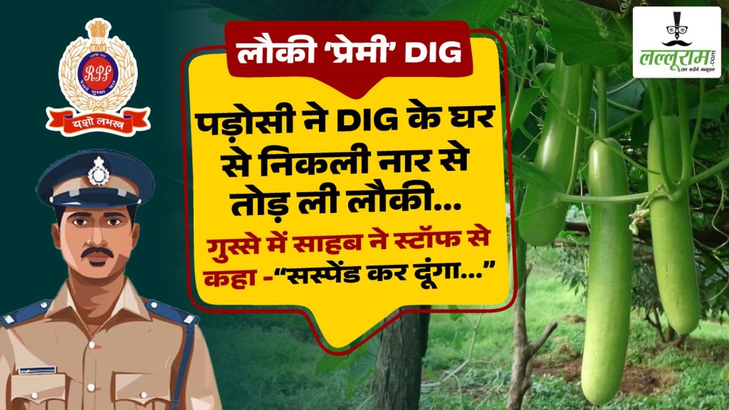 पड़ोसी अधिकारी ने अपने तरफ उगी 2 लौकी को तोड़ लिया. ये बात डीआईजी साहब को नागवार गुजरी, उन्होंने अपने बंगले में ड्यूटी करने वाले स्टॉफ को बुलाकर खूब फटकार लगाई और सस्पेंड करते तक की चेतावनी दी. डरे सहमे स्टॉफ ने पड़ोसी (रेलवे अधिकारी) के घर जाकर निवेदन किया और उनके द्वारा तोड़ी लौकी को वापस लाकर साहब के घर में छोड़ दिया.