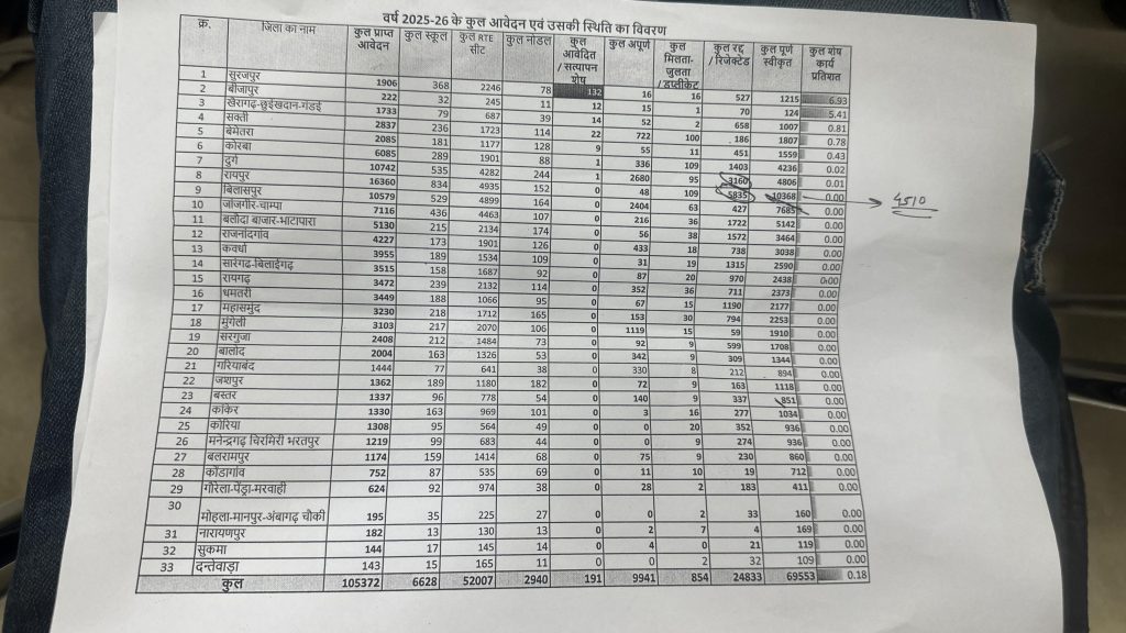RTE Admission 2025-26: सत्या राजपूत, रायपुर। निशुल्क एवं अनिवार्य बाल शिक्षा अधिकार अधिनियम 2009 (RTE) के अंतर्गत शैक्षणिक सत्र 2025-26 में प्रवेश के लिए आरटीई पोर्टल के माध्यम से प्रथम चरण की लॉटरी प्रक्रिया सोमवार को लोक शिक्षण संचालनालय, नवा रायपुर में शुरू हुई. यह प्रक्रिया 5 मई से 6 मई 2025 तक चलेगी.