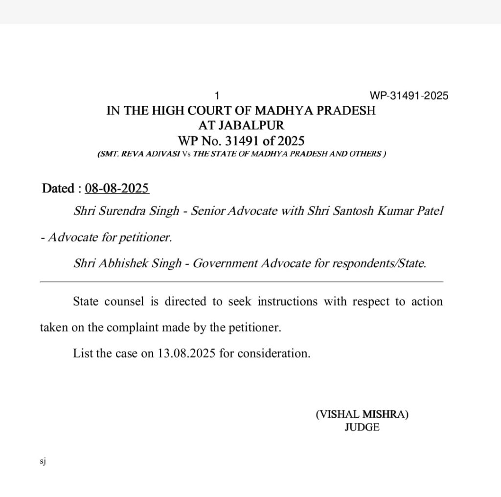 कुमार इंदर, जबलपुर। सागर में आदिवासी युवक नीलेश की आत्महत्या मामले में हाईकोर्ट ने सवाल किए हैं। न्यायालय ने पूछा कि इस मामले में क्या कार्रवाई की गई? हाईकोर्ट ने शासकीय अधिवक्ता को जवाब पेश करने के निर्देश दिए हैं।