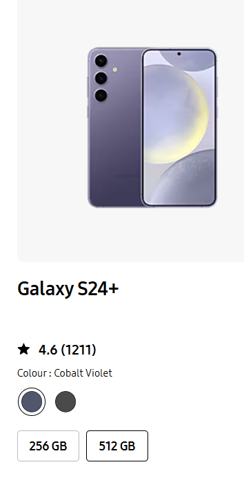 Samsung Galaxy S24 Plus (Cobalt Violet, 12GB RAM + 256GB स्टोरेज) – ₹59,679