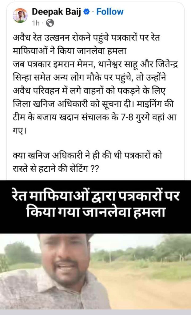 इसे भी पढ़ें – रेत माफियाओं के हौसले बुलंद: अवैध खनन की कवरेज करने पहुंचे रिपोर्टरों को दौड़ा-दौड़ाकर पीटा, कैमरा और ID छीने, देखें VIDEO
