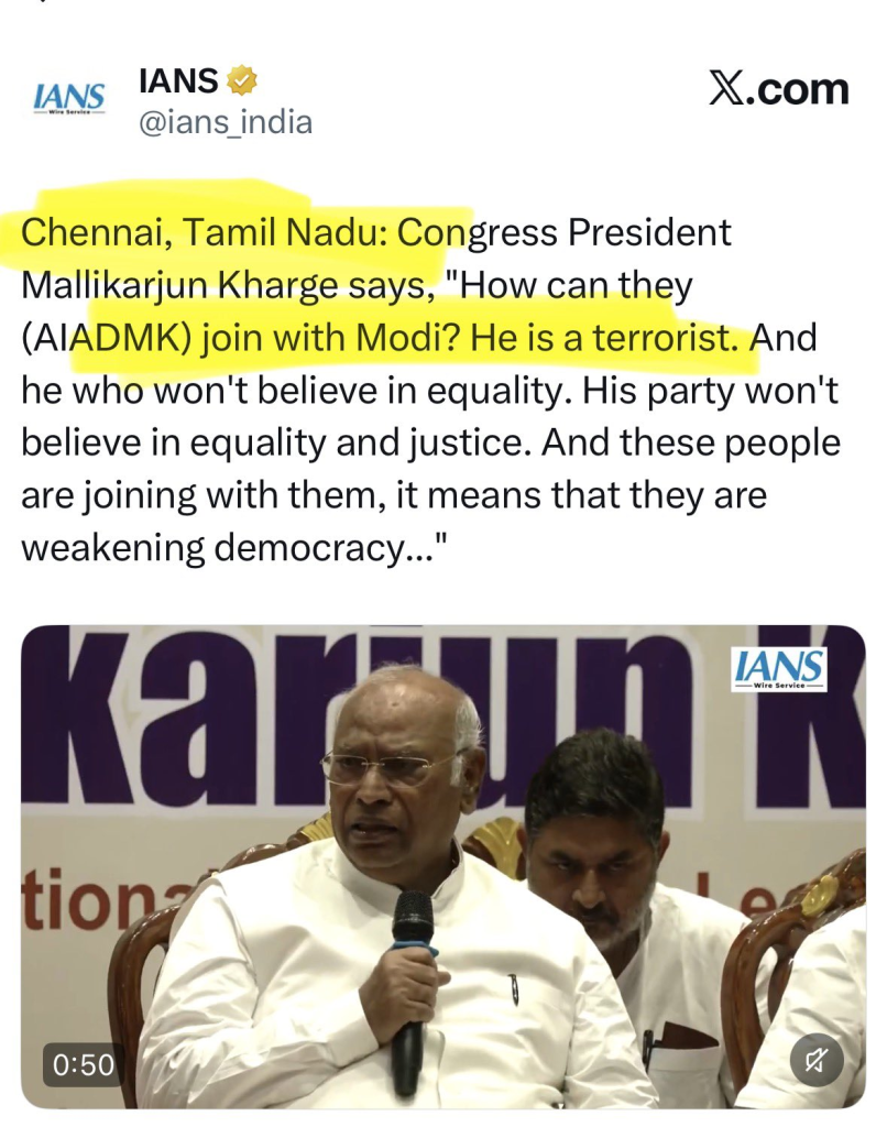 संजय राउत ने कहा कि मल्लिकार्जुन खरगे ने पीएम मोदी को आतंकी नहीं कहा है। मोदी सबको डराते हैं। ईडी, सीबीआई और पुलिस का भय दिखाकर वह सबको डराते हैं। जो कोई डराता है वह दहशत पैदा करता है वो भी आतंकी कहा जाता है। अभी भी पीएम मोदी बंगाल चुनाव में ममता बनर्जी को डरा रहे हैं।