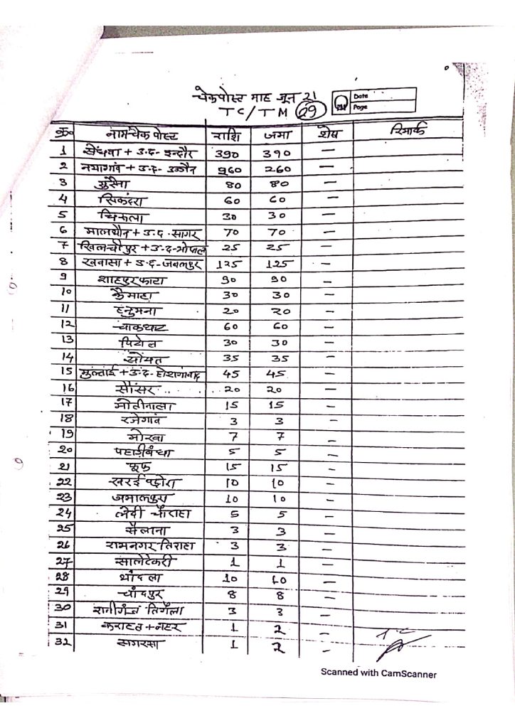 सौरभ की डायरी में किस चेक पोस्ट से कितने करोड़ की कमाई होती थी, इसका ब्यौरा भी मिला है। सेंधवा चेकपोस्ट, इंदौर RTO से सबसे ज्यादा काली कमाई आती थी।हर महीने 19 चेकपोस्ट से 161 करोड़ रुपए आते थे। वहीं, 51 RTO कार्यालयों से 136 करोड़ रुपए की कमाई होती थी। काली कमाई का हिस्सा हर महीने नेता, अफसर, रसूखदारों को मिलता था। सेंधवा चेकपोस्ट से हर महीने सबसे ज्यादा 40 करोड़ की वसूली होती थी। सबसे कम 50 लाख रुपए रामनगर तिराहा, कराहल चेकपोस्ट से मिलते थे। वहीं, नयागांव से 20, खवासा, सिकंदरा से 15-15, शाहपुर, मुलताई चेकपोस्ट से 10-10 करोड़ की वसूली होती थी।