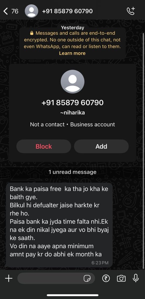 दावा है कि रतन ढिल्लों नाम के कस्टमर का स्टेट बैंक ऑफ इंडिया क्रेडिट कार्ड (State Bank Of India Credit Card) का 2-3 हज़ार रुपये का बिल पेंडिंग था। इसे लेकर बैंक से जुड़े एजेंट्स ने उन्हें ये विलादित वाला मैसेज भेजा। यूज़र बैंक को खरी-खोटी भी सुनाई। साथ ही कहा कि इस तरह के शब्दों के लिए बैंक को उनसे माफी मांगनी चाहिए।