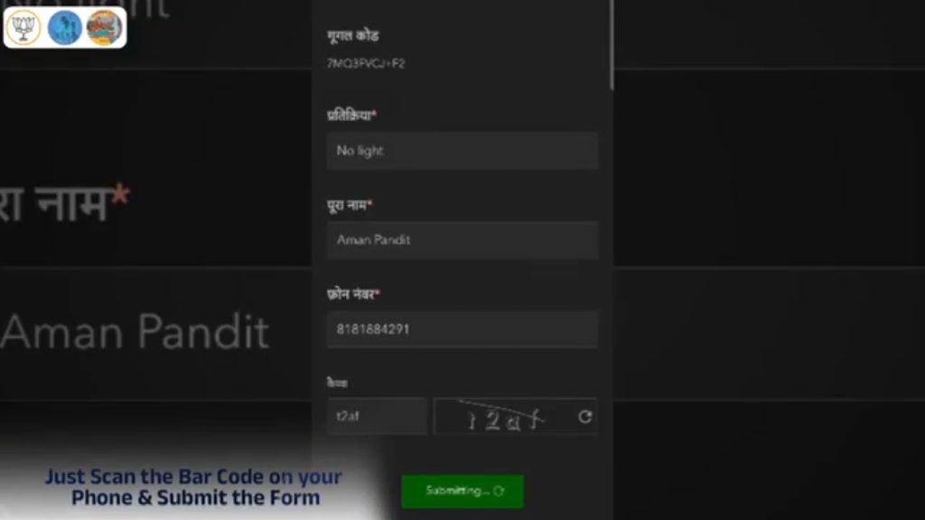 - यदि आप अपने स्मार्ट फोन पर इस बार कोड को स्कैन करेंगे तो एक छोटा सा फॉर्म खुलेगा.