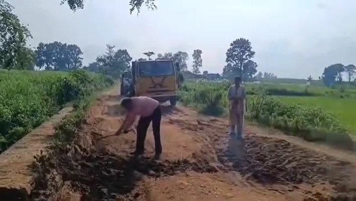 सुदीप उपाध्याय, बलरामपुर। जिले के राजपुर जनपद क्षेत्र के खोखनिया ग्राम पंचायत का एक वीडियो इन दिनों सोशल मीडिया पर तेजी से वायरल हो रहा है। इस वीडियो में गांव के स्कूल के शिक्षक और शिक्षिका खुद सड़क की मरम्मत करते नजर आ रहे हैं।
