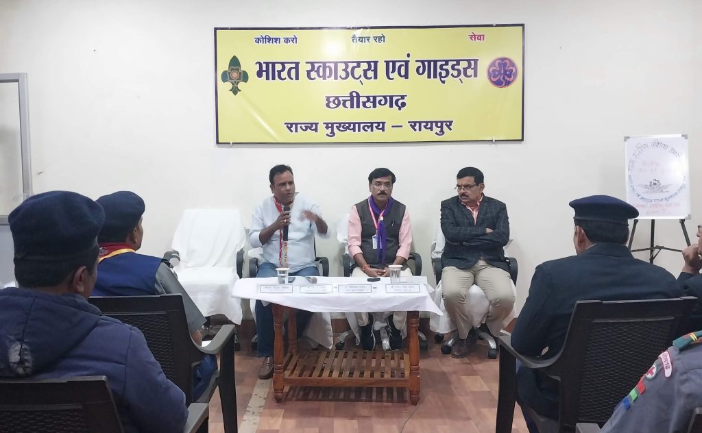 रायपुर। भारत स्कॉउटस एवम गाइडस छत्तीसगढ़ के रायपुर स्थित राज्य मुख्यालय ने शनिवार को एक अनूठी पहल की। छत्तीसगढ़ राज्य बनने के 24 वर्ष के इतिहास में पहली अपने स्कॉउटस और गाइडस को पत्रकारिता की विभिन्न विधाओं से परिचित करवाया गया। ये पहला अवसर था, जब प्रदेश के 33 जिलों के जिला प्रभारियों को प्रिंट, इलेक्ट्रॉनिक व न्यू मीडिया में काम करने के गुर सिखाए गए।