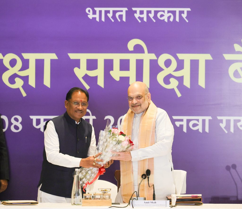 रायपुर। केंद्रीय गृह मंत्री अमित शाह की अध्यक्षता में नवा रायपुर में आज छत्तीसगढ़ सरकार और अधिकारियों के साथ नक्सलविरोधी अभियानों की समीक्षा बैठक आयोजित की गई। बैठक में वामपंथी उग्रवाद (LWE), राज्य में नक्सलवाद की वर्तमान स्थिति और बस्तर के विकास पर चर्चा हुई। इस दौरान राज्य और नक्सल प्रभावित अन्य प्रदेशों के अधिकारी भी मौजूद रहे।