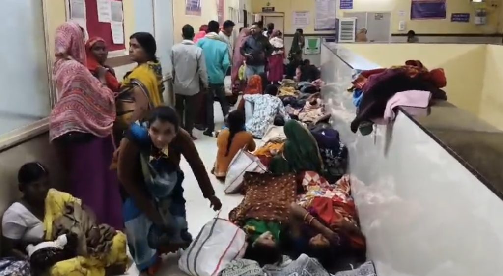 मनीष कुमार, बुरहानपुर। जिले के शाहपुर के सामुदायिक स्वास्थ्य केंद्र में बड़ी लापरवाही सामने आई है। जहां शनिवार को नसबंदी के बाद मरीज को जमीन पर लेटा दिया गया। बड़ी संख्या में महिलाएं नसबंदी के लिए पहुंची थी। अव्यवस्थाओं के कारण हालत बिगड़ गए। मरीजों को ठंड के दिनों में जमीन पर ही लिटा दिया। नसबंदी कराने के बाद महिलाओं को पानी तक नहीं मिला। वहीं बच्चों को स्वास्थ्य केंद्र की रेलिंग पर लटकाकर सुलाने को मजबूर होना पड़ा। भाजपा नेता वीरेंद्र तिवारी ने निरीक्षण कर अव्यवस्था पर नाराजगी जताई है। उन्होंने कहा कि संबंधित अधिकारियों पर कार्रवाई होना चाहिए।