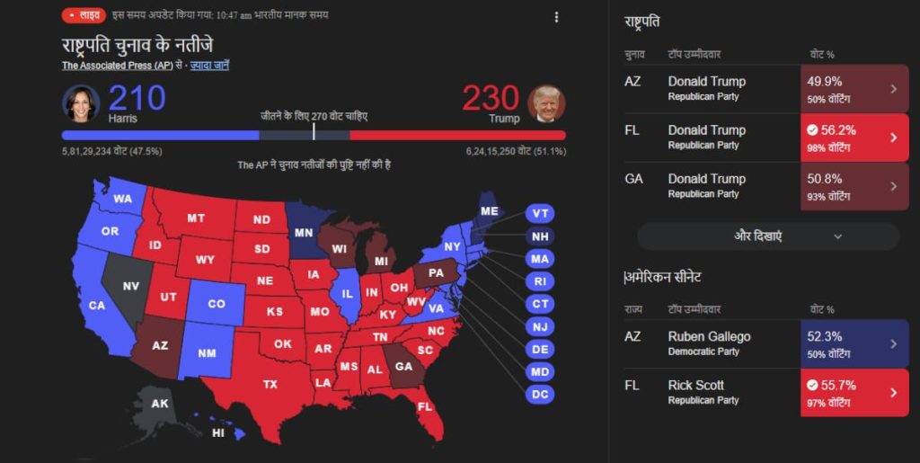 मुंबई। अमेरिकी राष्ट्रपति पद के लिए अभी मतों की गणना जारी है, लेकिन रिपब्लिक पार्टी के उम्मीदवार डोनाल्ट ट्रंप की बढ़त को देखते हुए भारत के साथ-साथ दुनिया के तमाम शेयर बाजार में नई जान आ गई है. भारतीय बेंचमार्क सूचकांक, सेंसेक्स और निफ्टी ने 6 नवंबर को दूसरे सत्र में भी बढ़त बनाए रखी है.