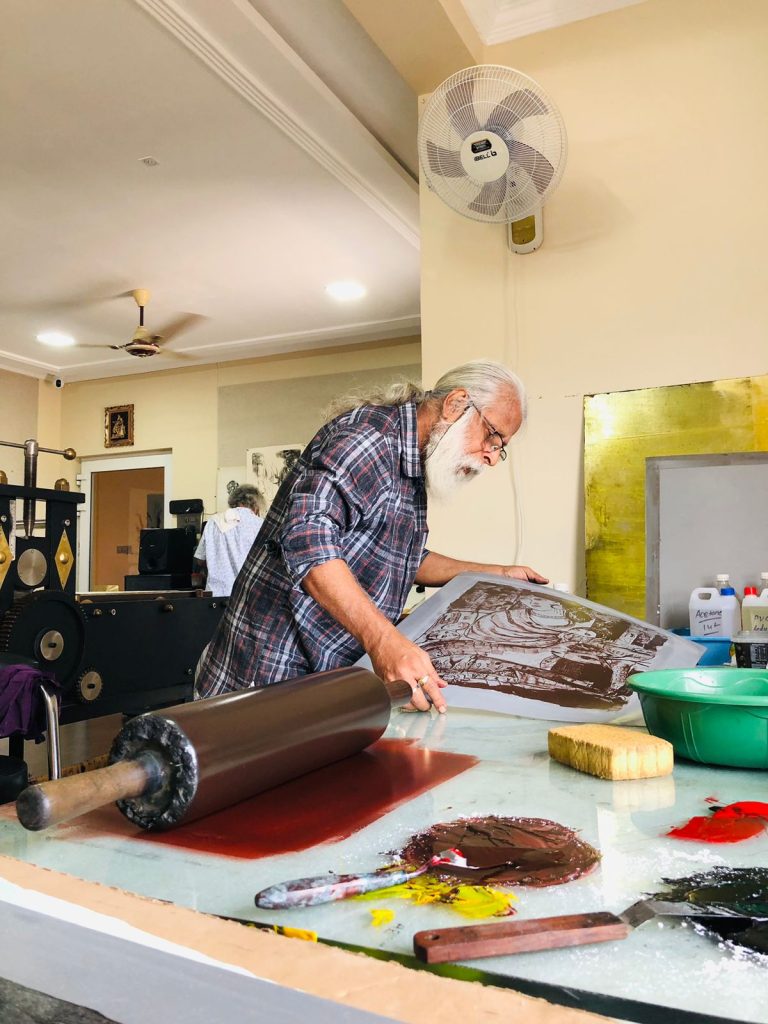 रायपुर. छत्तीसगढ़ की राजधानी रायपुर, जो अपनी आदिम कला और संस्कृति के लिए विख्यात है, में 10 मई से 16 मई तक वेदांता सिटी, कांदूल में सात दिवसीय राष्ट्रीय प्रिंटकला (प्लेटोग्राफी) कार्यशाला का आयोजन किया जा रहा है. इस कार्यशाला का शुभारंभ प्रख्यात प्रिंटमेकर प्रो. व्ही. नागदास के नेतृत्व में देश के प्रसिद्ध प्रिंटमेकर और चित्रकार प्रो. अजित शील (शांति निकेतन, पश्चिम बंगाल), रमेन्द्रनाथ काश्ठा (कोलकाता, पश्चिम बंगाल), और प्रो. विजय बगोड़ी (बड़ोदरा, गुजरात) ने दीप प्रज्ज्वलन के साथ किया.