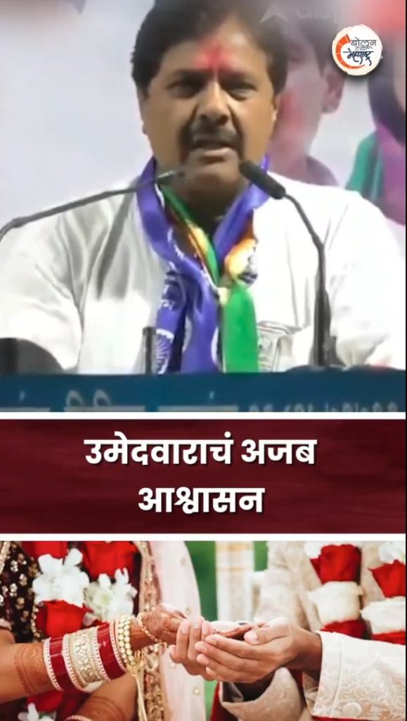 राजेसाहेब देशमुख ने कहा, “अगर मैं विधायक बन गया तो सभी कुंवारों का विवाह कराऊंगा। हम युवाओं को काम देंगे। लोग (दुल्हन की तलाश कर रहे व्यक्ति से) पूछते हैं कि क्या उसके पास कोई नौकरी है या क्या उसका कोई व्यवसाय है, जब जिले के संरक्षक मंत्री (धनंजय मुंडे) के पास खुद कोई व्यवसाय नहीं है तो आपको क्या मिलेगा। उन्होंने दावा किया कि मुंडे निर्वाचन क्षेत्र में एक भी उद्योग नहीं ला पाए और इसलिए नौकरी नहीं होने के कारण स्थानीय युवकों के विवाह में मुश्किल आ रही है। साथ ही उन्होंने कहा कि अगर इस मुश्किल से निपटना है तो मुझे यहां से जिता दीजिए।
