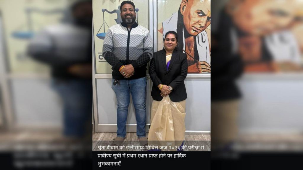 रिजल्ट जारी होने के बाद श्वेता के फॉरेस्ट अधिकारी पति सुयश धार दीवान ने फेसबुक में पोस्ट करते हुए लिखा – “रैंक 1 प्राप्त करने के लिए बधाई पत्नी… आपकी यात्रा वास्तव में विस्मयकारी है! न्यायपालिका में आपकी शानदार सफलता, असाधारण समर्पण को दर्शाती है। इसके अतिरिक्त, एक शिशु के साथ तैयारी करना आपका उल्लेखनीय लचीलापन दिखाता है। तकनीकी क्षेत्र में पांच साल की इंजीनियरिंग के बाद यह सफलता आपकी अनुकूलता और दृढ़ प्रतिबद्धता पर प्रकाश डालती है। इस योग्य उपलब्धि के लिए बधाई। आपकी ताकत और दृढ़ संकल्प उज्ज्वल रूप से चमकते हैं। कानून में एक पूर्ण और सफल करियर के लिए शुभकामनाएं! तुमसे प्यार करता हूं।”