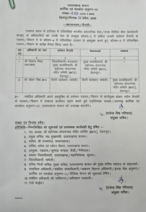 बता दें कि चारधाम यात्रा के सुचारू संचालन के लिए बद्री-केदार मंदिर समिति की भूमिका बेहद महत्वपूर्ण होती है. बावजूद इसके यात्रा शुरू होने तक इस समिति के CEO पद पर स्थायी नियुक्ति नहीं हो पाई थी, जिससे व्यवस्थाओं को लेकर सवाल भी उठ रहे थे. इससे पहले यह जिम्मेदारी अतिरिक्त प्रभार के तौर पर विशाल मिश्रा जिलाधिकारी रुद्रप्रयाग के पास थी. हालांकि एक साथ जिले की और चारधाम यात्रा जैसे बड़े आयोजन से जुड़े कार्यों की जिम्मेदारी संभालना चुनौतीपूर्ण साबित हो रहा था. यही वजह रही कि सरकार ने इस पद पर पूर्णकालिक अधिकारी की तैनाती का फैसला लिया.