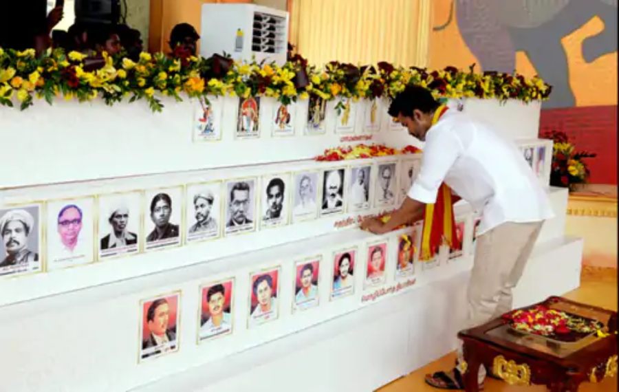विजय ने अपने संबोधन में कहा, “यह हमारा कर्तव्य है कि हम अपनी विचारधारा को लोगों तक पहुंचाएं और उनके सामने उन नेताओं को रखें जिन्होंने इस भूमि के लोगों के लिए अथक परिश्रम किया है। उन्होंने पार्टी की विचारधारा को पेरियार और डॉ बीआर अम्बेडकर के सिद्धांतों से जोड़ते हुए, सामाजिक समानता के प्रति अपनी प्रतिबद्धता पर जोर दिया।