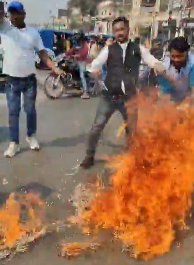 लखनऊ. निषाद पार्टी के प्रदेश सचिव की मौत से नाराज सपा कार्यकर्ताओं ने लखनऊ में हंगामा किया. कार्यकर्ताओं ने निषाद पार्टी अध्यक्ष संजय निषाद का पुतला फूंका और उनके खिलाफ नारेबाजी की. सपा कार्यकर्ताओं के नारे लगाए कि ‘संजय निषाद को समाज माफ नहीं करेगा, धर्मात्मा निषाद को न्याय मिलना चाहिए’. हजरतगंज चौराहे पर पुतला लेकर पहुंचे सपा कार्यकर्ताओं को पुलिस ने हिरासत में ले लिया है. सभी को ईको गार्डन भेजा है.