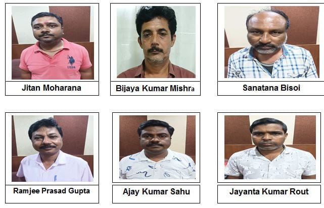 बता दें कि गिरफ्तार किए गए व्यक्तियों की पहचान जितन मोहरना, बिजय कुमार मिश्रा, सनातन बिसोई, रामजी प्रसाद गुप्ता, अजय कुमार साहू और जयंत कुमार राउत के रूप में हुई है। क्राइम ब्रांच ने BSE, ओडिशा की प्रभारी स्थापना अधिकारी बुलबुल बेहरा की शिकायत के आधार पर यह कार्रवाई की।