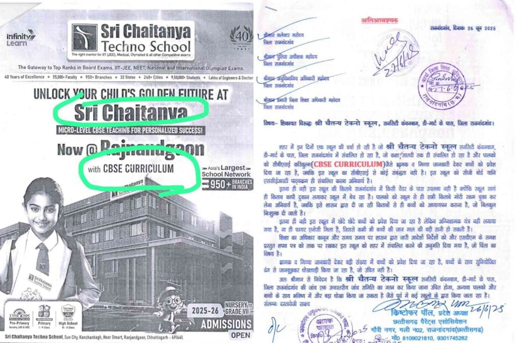 क्रिस्टोफर पॉल ने श्री चैतन्य टेकनो स्कूल पर सीबीएसई के नाम पर भ्रम फैलाने का आरोप लगाया है. शिकायत में यह भी उल्लेख किया गया है कि स्कूल सीबीएसई पैटर्न के नाम पर पालकों को गुमराह कर रहा है. कई पालक यह मानकर अपने बच्चों को स्कूल में भर्ती करा रहे हैं कि यहां सीबीएसई का सिलेबस पढ़ाया जा रहा है, जबकि हकीकत इससे कोसों दूर है.