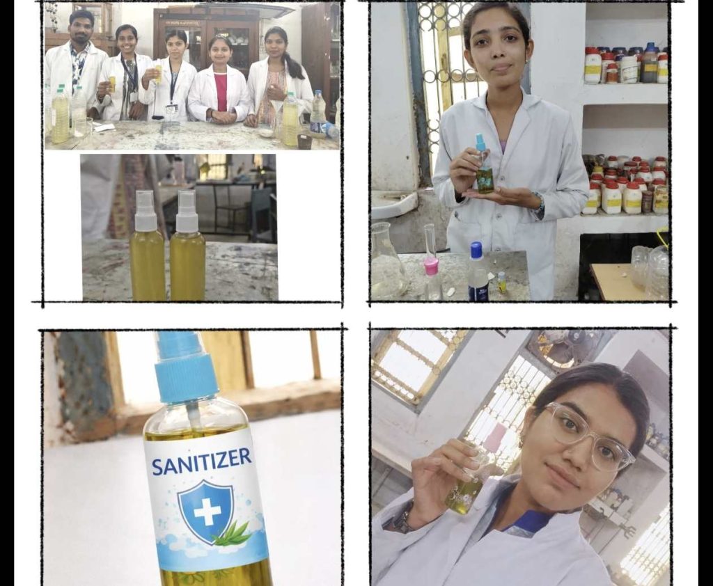 डॉ. ज्योति दीवान के दिशा निर्देश एवं विभागाध्यक्ष गणेश राम कुर्रे, डॉ. आकांक्षा एक्का व रुपेश देवांगन सहायक प्राध्यापक के कुशल मार्गदर्शन में छात्र-छात्राओं ने हर्बल सैनिटाइजर का निर्माण किया है। महाविद्यालय के प्राचार्य डाॅ. एके उपाध्याय ने इस उपलब्धि की सराहना करते हुए विद्यार्थियों को आगे भी ऐसे नवाचार करने के लिए प्रोत्साहित किया।
