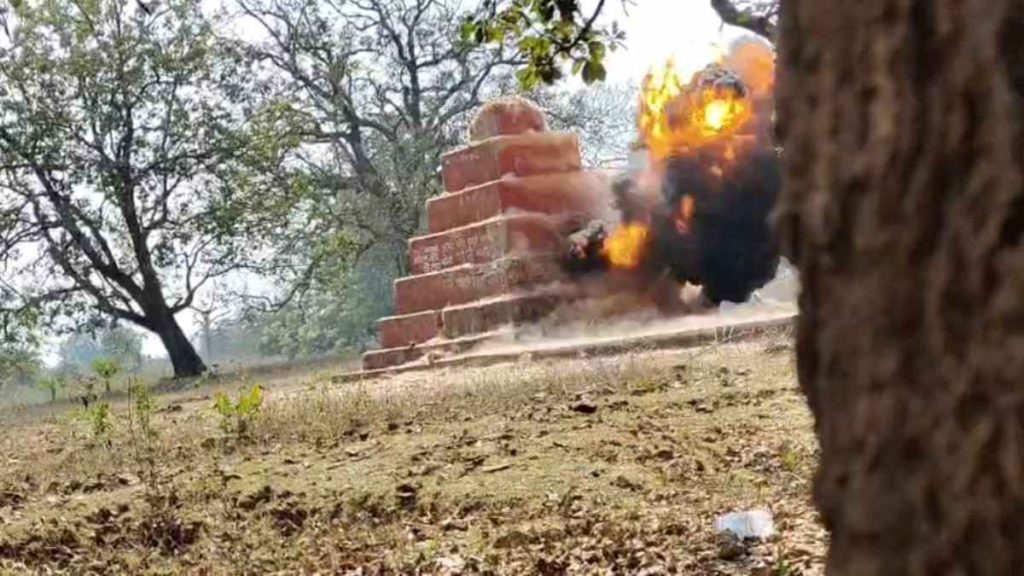 सुकमा। छत्तीसगढ़ के बस्तर संभाग में नक्सलियों के खिलाफ चलाए जा रहे अभियान में सुरक्षाबलों को एक और बड़ी प्रतीकात्मक जीत मिली है. सुकमा जिले के गोगुंडा पहाड़ पर जवानों ने धावा बोलते हुए खूंखार नक्सली कमांडर और सीसी मेंबर रमन्ना के 20 फीट ऊंचे विशाल स्मारक को मलबे में तब्दील कर दिया है.