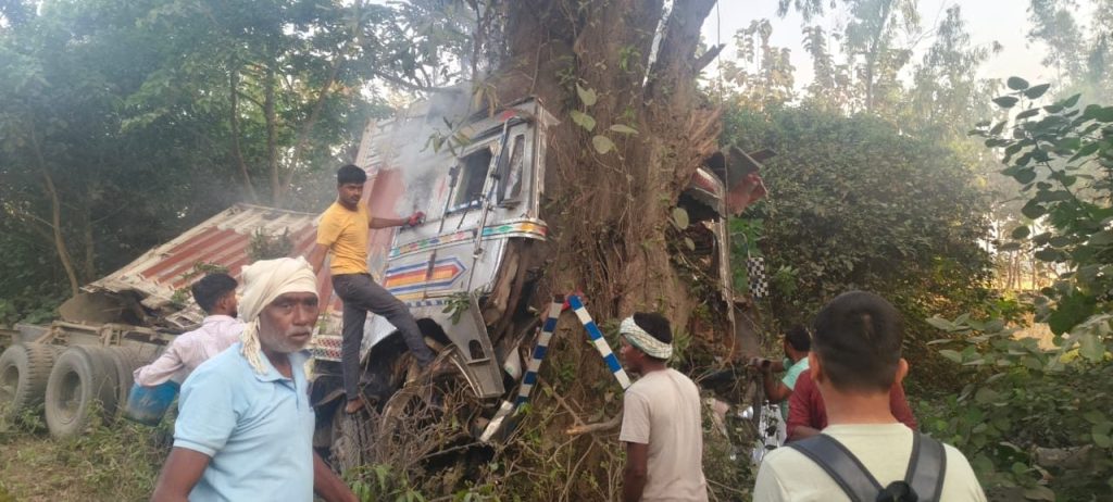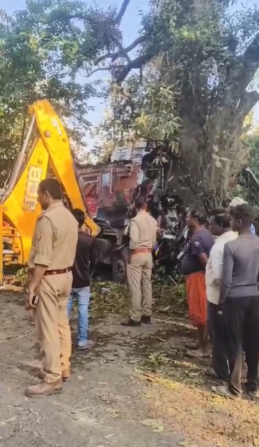 सुलतानपुर. सुलतानपुर जिले के बरौंसा में लखनऊ-बलिया हाइवे पर गोसाईगंज थाने के बांसगांव के पास शुक्रवार की सुबह भीषण सड़क हादसा हो गया. सीमेंट से भरी ट्रक अनियंत्रित होकर पेड़ से टकरा गई. टक्कर इतनी जोरदार थी कि वाहन के परखच्चे उड़ गए. हादसे में चालक समेत दो लोगों की घटनास्थल पर मौत हो गई. ट्रक सवार दो लोगों को गंभीर अवस्था में मेडिकल कॉलेज सुल्तानपुर ले जाया गया है.