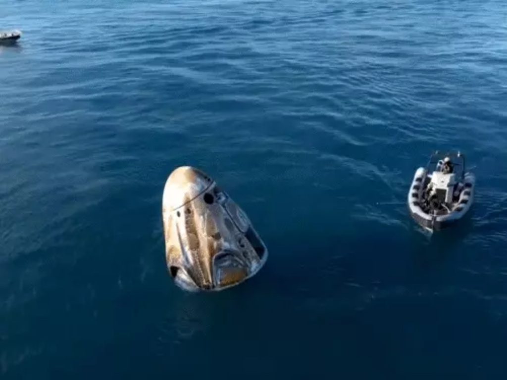 लैंडिंग के कुछ देर बाद ही रिकवरी क्रू स्पेसक्राफ्ट के पास पहुंच गया।