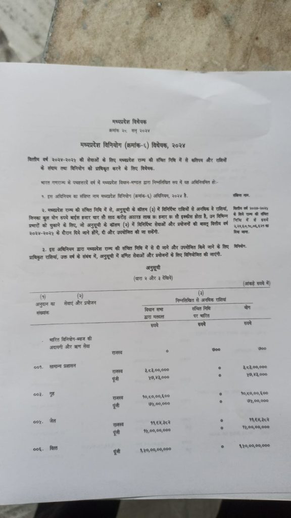 एमपी विधानसभा शीताकालीन सत्र का आज दूसरा दिन है। मंगलवार को सदन में वित्त मंत्री जगदीश देवड़ा ने 2024-25 के लिए 22 हजार 460 करोड़ का सप्लीमेंट्री बजट पटल पर रखा है। कल बुधवार को इस पर चर्चा होगी। बजट पर चर्चा के लिए चार घंटे का समय तय किया गया है। इसके साथ ही विधानसभा की कार्यवाही कल तक के लिए स्थगित कर दी गई है।