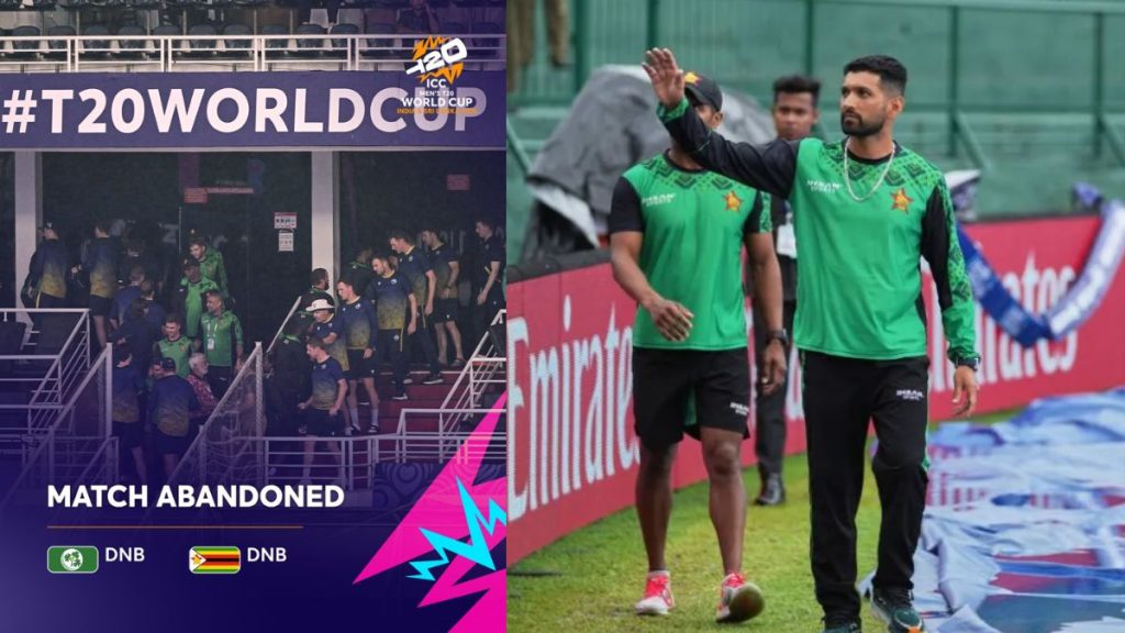 T20 World Cup 2026: टी20 वर्ल्ड कप 2026 का 32वां मुकाबला आयरलैंड और जिम्बाब्वे के बीच श्रीलंका के पल्लेकेले स्टेडियम में खेला जाना था, लेकिन लगातार बारिश के कारण मैच रद्द कर दिया गया। मुकाबला रद्द होने के बाद दोनों टीमों को 1-1 अंक मिला। इस एक अंक ने जिम्बाब्वे को बड़ा फायदा पहुंचाया और टीम ने सुपर-8 में अपनी जगह पक्की कर ली। वहीं ऑस्ट्रेलिया का टूर्नामेंट से सफर समाप्त हो गया।