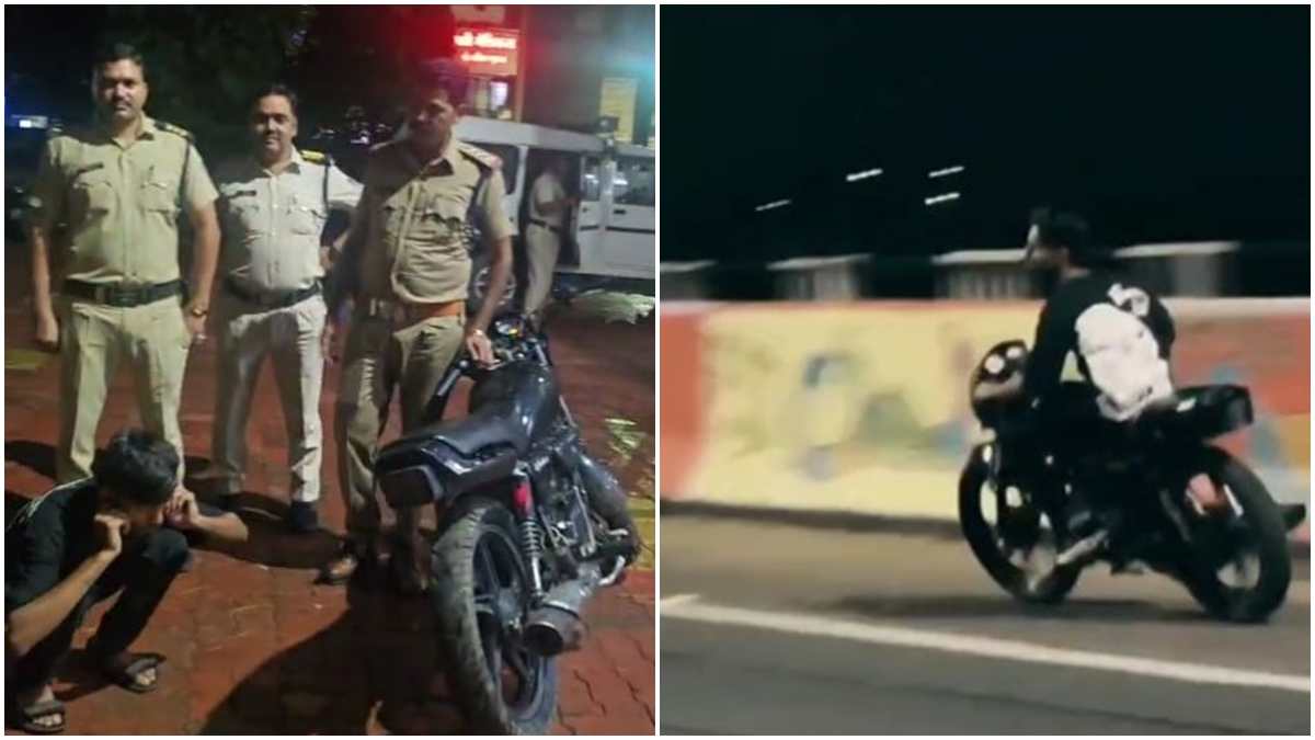 मध्यप्रदेश फ्लाई ओवर पर बाइक स्टंट कर रील बनाना पड़ा भारी: पुलिस ने स्टंटबाज युवक को सिखाया सबक, कान पकड़कर मांगी माफी